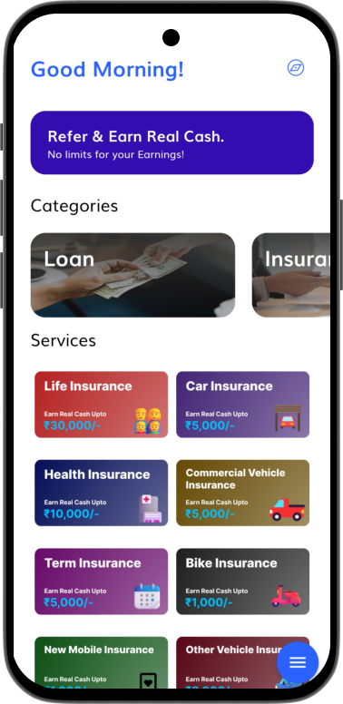As our Slogan says Earn Real Cash! We are also saying No Limits for your Earnings. All you need to do is very simple. Download our App from Play store, Register yourself, choose the services which you or your friend/relative/neighbour or colleagues required &refer. That's it! Your Job is done! Your earning meter Started! Once the customer successfully availed our service, you will start get notification from us, about your incentives. Every Calendar month by 10 th , you will receive your Incentives to your Bank account.